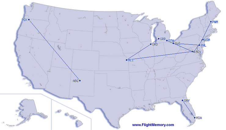 | Lengsta flug(vegalengd): | 1,110 mi, 2:29 h, Albuquerque (International Sunport) - Portland (International), 12-08-2025 |