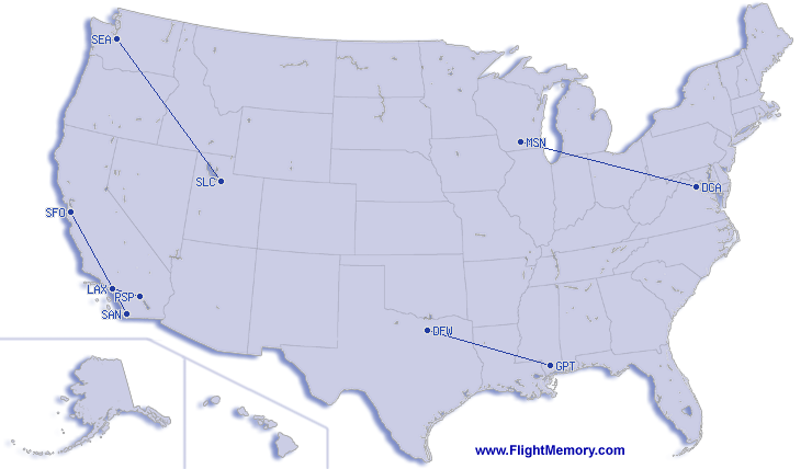 | Ilgiausias skrydis (trukmė): | 2:55 h, 447 mi, San Francisco (International) - San Diego (Lindbergh Field), 03-19-2026 |