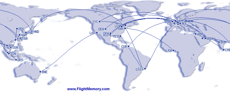 | Purata Penerbangan: | 3,302 mi, 6:44 h |