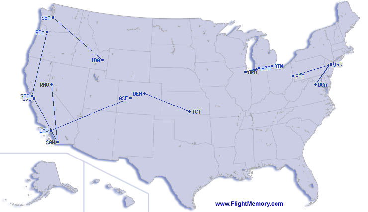 | Lengste flygning (Flytid): | 2:34 h, 737 mi, Los Angeles (International) - Aspen (Aspen-Pitkin County Airport), 03-01-2026 |