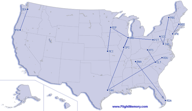 | Lengste flygning (Distanse): | 1,042 mi, 3:13 h, Raleigh (Raleigh-Durham International) - Houston (George Bush Intercontinental), 04-23-2026 |