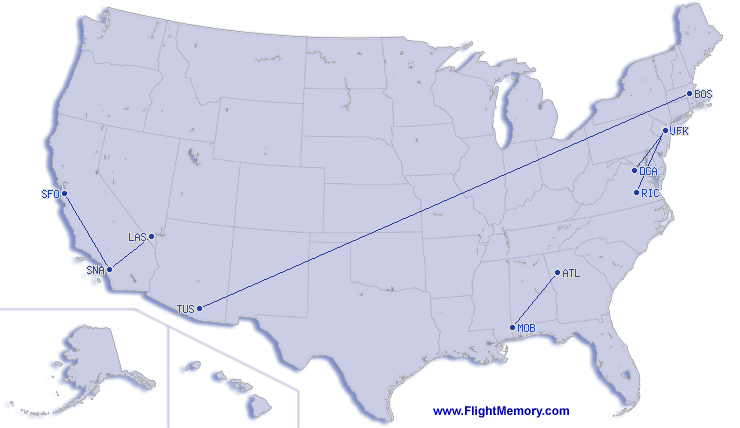 | Najduzi let (trajanje-vremenski): | 5:00 h, 2,287 mi, Boston (Logan) - Tucson (International), 01-23-2026 |