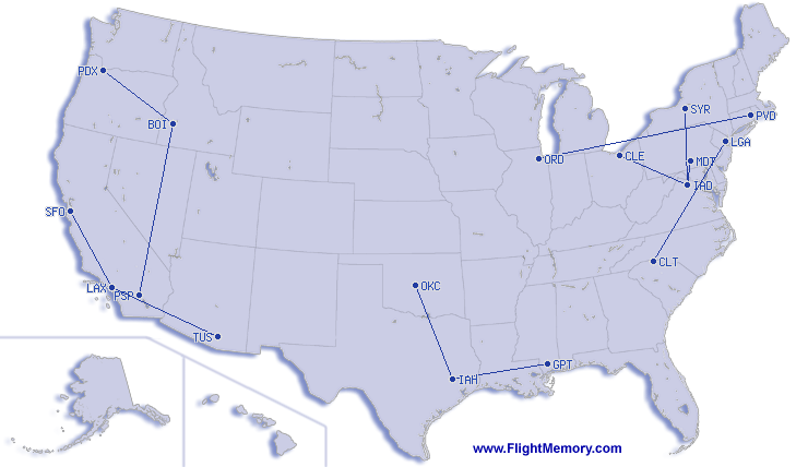 | Najkraci let: | 94 mi, 0:40 h, Harrisburg (International) - Washington (Dulles), 03-23-2026 |