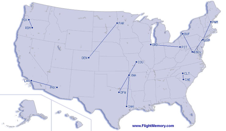 | Najduzi let (trajanje-vremenski): | 2:43 h, 784 mi, Winnipeg (J.Armstrong Richardson Int.) - Denver (International), 04-06-2026 |