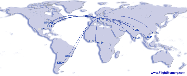 | Penerbangan terlama: | 13:50 h, 7,154 mi, Frankfurt (Rhein-Main) - Buenos Aires (Ezeiza - Ministro Pistarini), 03-14-2026 |
