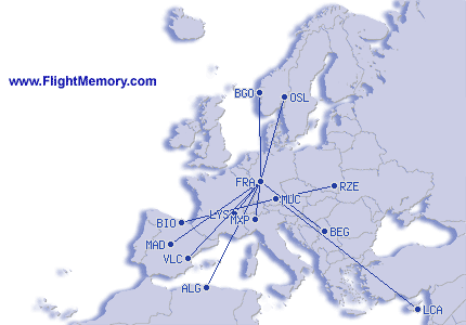 | הטיסה הכי קצרה: | 97 mi, 0:45 h, Stuttgart (Manfred Rommel) - Frankfurt (Rhein-Main), 12-31-2025 |