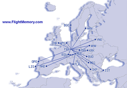 | Stysta flug: | 94 mi, 0:40 h, Frankfurt (Rhein-Main) - Köln (Hauptbahnhof), 12-04-2025 |