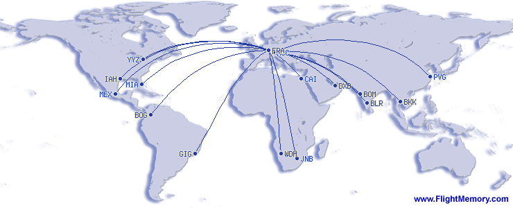 | Lengsta flug(vegalengd): | 5,951 mi, 11:09 h, Frankfurt (Rhein-Main) - Rio de Janeiro (Galeao), 01-07-2026 |