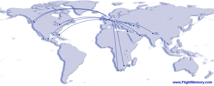 | Lengsta flug(flugtími): | 12:20 h, 5,942 mi, Frankfurt (Rhein-Main) - Mexiko City (Internacional Benito Juárez), 02-01-2026 |