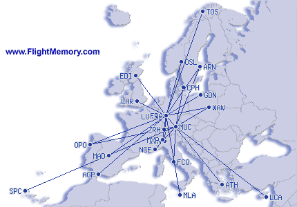 | 最短フライト: | 97 mi, 0:40 h, Frankfurt (Rhein-Main) - Stuttgart (Manfred Rommel), 11-30-2025 |