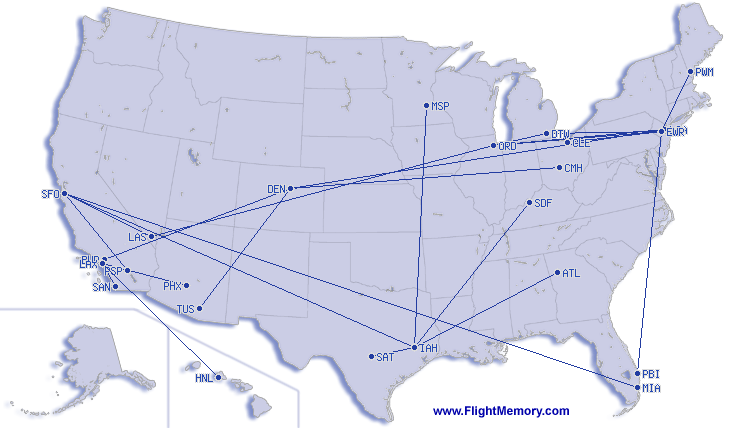| Najkraci let: | 109 mi, 0:42 h, San Diego (Lindbergh Field) - Los Angeles (International), 04-15-2026 |