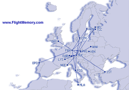 | najkrajši let: | 97 mi, 0:40 h, Frankfurt (Rhein-Main) - Stuttgart (Manfred Rommel), 03-01-2026 |