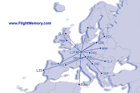 | najkrajši let: | 97 mi, 0:40 h, Frankfurt (Rhein-Main) - Stuttgart (Manfred Rommel), 04-06-2026 |
