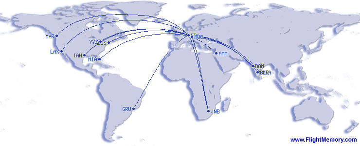 | najdaljši let (časovno): | 12:15 h, 5,982 mi, München (Franz Josef Strauß) - Los Angeles (International), 03-01-2026 |