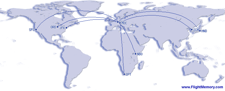| najdaljši let (po dolžini): | 5,871 mi, 11:15 h, San Francisco (International) - München (Franz Josef Strauß), 03-22-2026 |