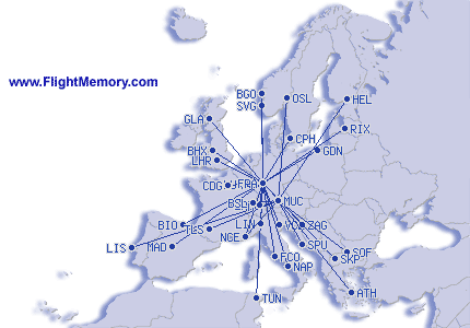 | Najkratší let: | 97 mi, 0:50 h, Stuttgart (Manfred Rommel) - Frankfurt (Rhein-Main), 04-02-2026 |