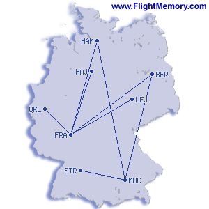 | เที่ยวบินที่สั้นที่สุด: | 94 mi, 0:40 h, Köln (Hauptbahnhof) - Frankfurt (Rhein-Main), 11-02-2025 |