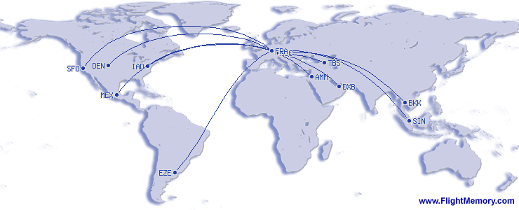 | เที่ยวบินที่นานที่สุด: | 13:25 h, 6,395 mi, Singapur (Changi) - Frankfurt (Rhein-Main), 11-01-2025 |