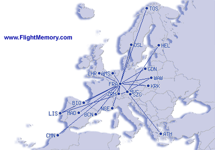 | 最短航程: | 97 mi, 0:40 h, Frankfurt (Rhein-Main) - Stuttgart (Manfred Rommel), 11-16-2025 |