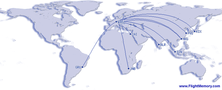 | 最長航程(距離): | 6,395 mi, 12:56 h, Singapur (Changi) - Frankfurt (Rhein-Main), 03-17-2026 |