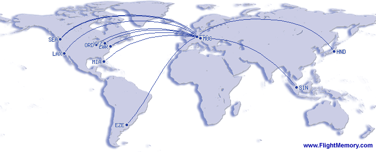 | 最長航程(距離): | 7,154 mi, 13:18 h, Frankfurt (Rhein-Main) - Buenos Aires (Ezeiza - Ministro Pistarini), 04-23-2026 |