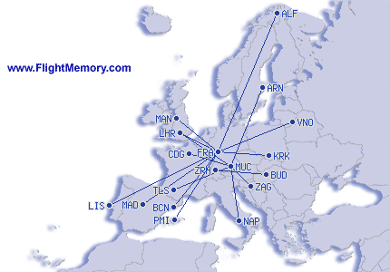 | Найкоротший політ: | 117 mi, 0:27 h, Frankfurt (Rhein-Main) - Düsseldorf (International), 03-10-2026 |