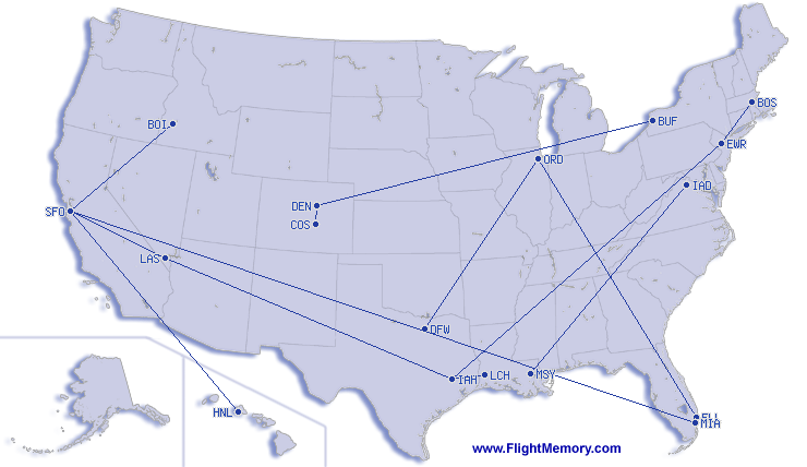 | kürzester Flug: | 73 mi, 0:49 h, Denver (International) - Colorado Springs (Municipal), 11-29-2025 |