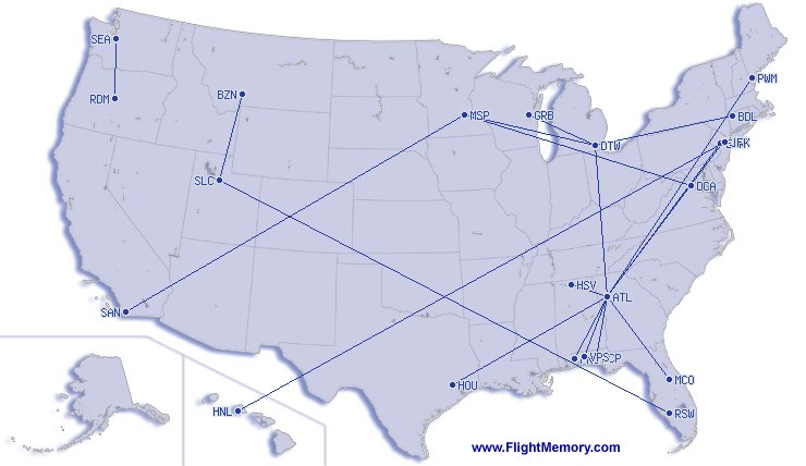 | Μικρότερη πτήση: | 151 mi, 0:48 h, Huntsville (Carl T. Jones Field) - Atlanta (Hartsfield - Jackson Int.), 01-16-2026 |