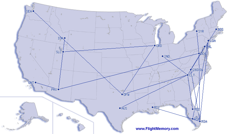 | Μικρότερη πτήση: | 130 mi, 0:56 h, Charlotte (Charlotte/Douglas International) - Raleigh (Raleigh-Durham International), 01-30-2026 |