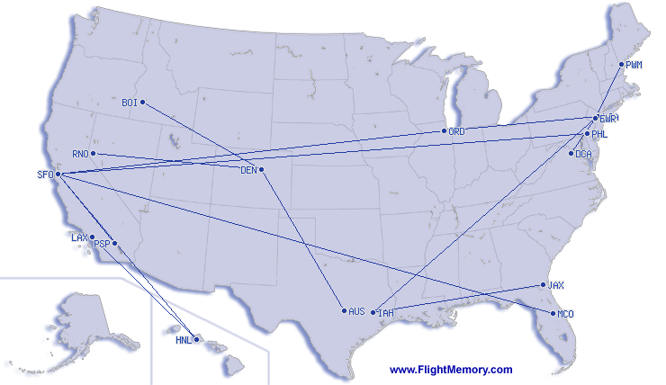 | Stysta flug: | 199 mi, 1:07 h, Newark (Liberty) - Washington (Ronald Reagan National), 12-22-2025 |