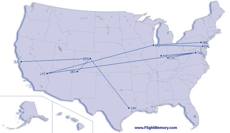 | Stysta flug: | 250 mi, 1:17 h, Durango (Durango la Plata) - Denver (International), 01-24-2026 |