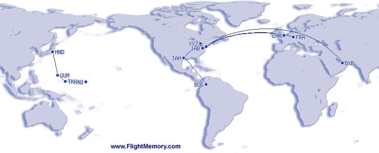 | Lengsta flug(flugtími): | 15:25 h, 6,856 mi, Dubai (International) - Newark (Liberty), 11-16-2025 |