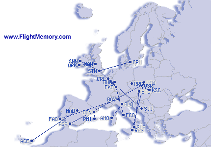 | 최단거리비행 : | 126 mi, 0:43 h, Palma de Mallorca (Son San Juan) - Barcelona (Josep Tarradellas Barcelona-El Prat), 12-20-2025 |