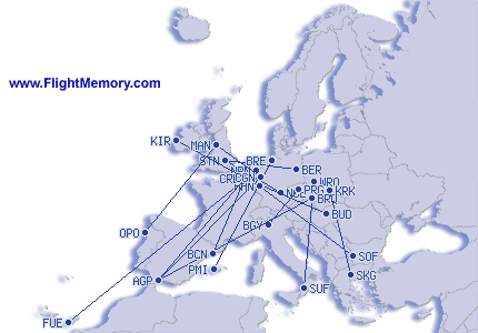| 최단거리비행 : | 372 mi, 1:10 h, Bergamo (Orio al Serio) - Prague (Vaclav Havel), 03-14-2026 |