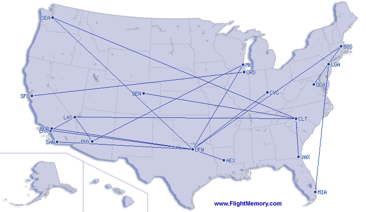 | Īsākais lidojums: | 237 mi, 1:09 h, Las Vegas (Harry Reid International) - Los Angeles (International), 12-01-2025 |