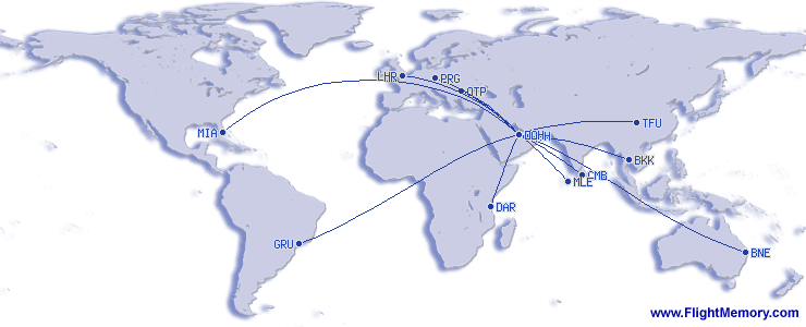 | Garākais lidojums: | 7,676 mi, 13:45 h, Miami (International) - Doha (Hamad International), 01-03-2026 |