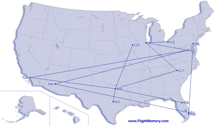 | Kortste vlucht: | 190 mi, 0:42 h, Austin (Bergstrom International) - Dallas/Fort Worth (International), 01-08-2026 |