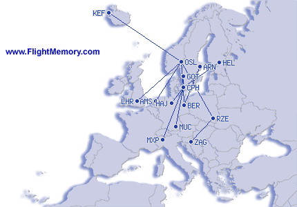 | Najduzi let (daljina): | 1,109 mi, 3:00 h, Oslo (Gardermoen) - Reykjavik (Keflavik International), 02-24-2026 |