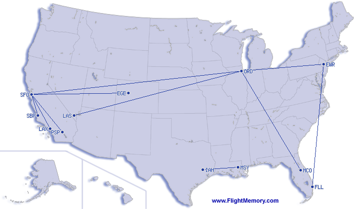 | Najkraci let: | 191 mi, 0:51 h, San Luis Obispo - San Francisco (International), 02-11-2026 |