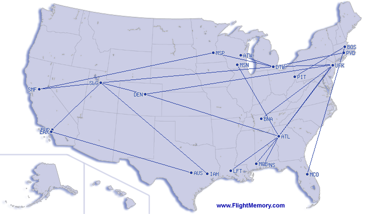 | Najkraci let: | 122 mi, 0:00 h, Chicago (O'Hare) - Kalamazoo (Battle Creek International), 04-27-2026 |
