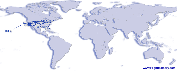 | Längsta flygsträcka: | 2,462 mi, 4:54 h, Honolulu (Daniel K. Inouye Int.) - Sacramento (International), 04-09-2026 |
