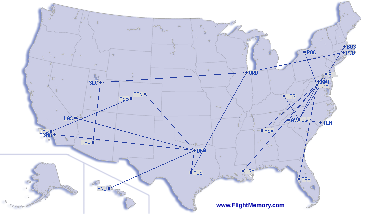 | najkrajši let: | 185 mi, 1:09 h, Charlotte (Charlotte/Douglas International) - Wilmington (International), 03-22-2026 |