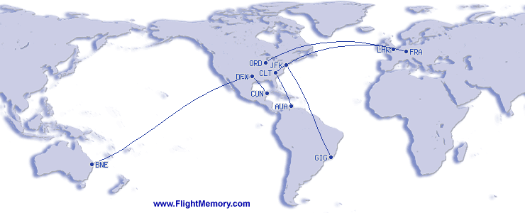 | najdaljši let (po dolžini): | 8,313 mi, 14:45 h, Brisbane (International) - Dallas/Fort Worth (International), 03-23-2026 |