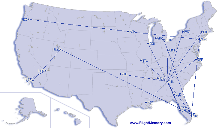 | En kýsa uçuþ: | 120 mi, 0:46 h, Grand Rapids (Gerald R Ford International) - Detroit (Metropolitan Wayne County), 04-17-2026 |