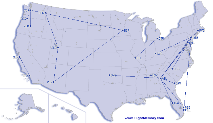 | Найкоротший політ: | 130 mi, 0:44 h, Portland (International) - Seattle (Seattle-Tacoma International), 12-18-2025 |