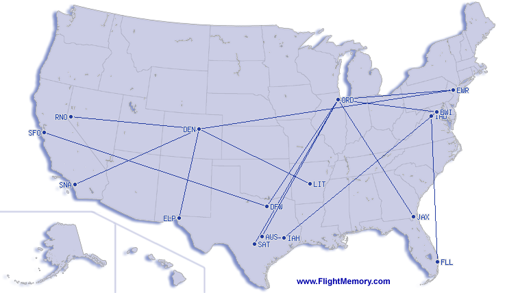 | Найкоротший політ: | 140 mi, 0:45 h, Austin (Bergstrom International) - Houston (George Bush Intercontinental), 04-01-2026 |