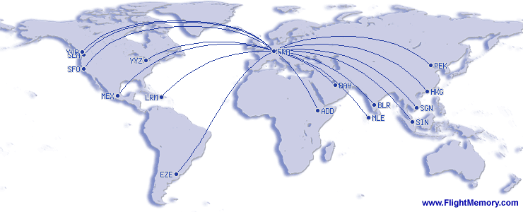 | najdaljši let (po dolžini): | 7,154 mi, 13:18 h, Buenos Aires (Ezeiza - Ministro Pistarini) - Frankfurt (Rhein-Main), 02-01-2026 |