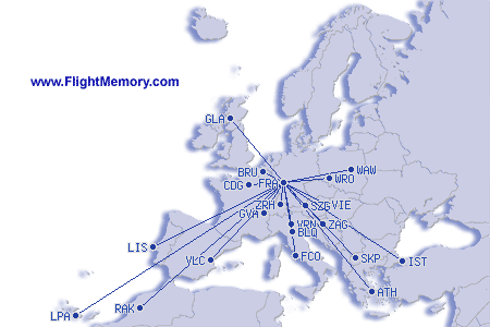 | Najkratší let: | 175 mi, 0:59 h, Hanover (Langenhagen) - Frankfurt (Rhein-Main), 04-05-2026 |