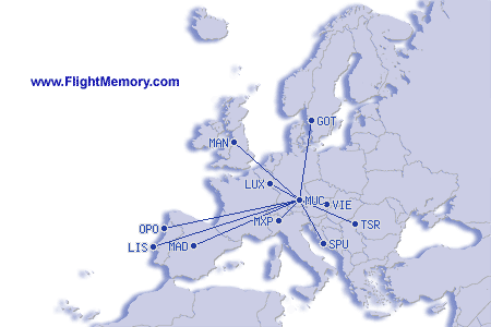 | 所搭乘过最短距离及时间的航线: | 186 mi, 0:50 h, München (Franz Josef Strauß) - Frankfurt (Rhein-Main), 04-08-2026 |