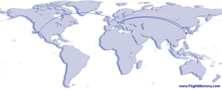 | 所搭乘过最长时间的航线: | 13:10 h, 5,460 mi, Shanghai (Pudong) - München (Franz Josef Strauß), 04-08-2026 |
